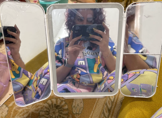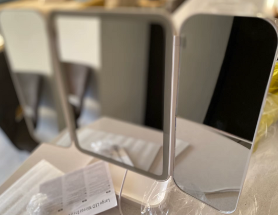 Sì, la base dello specchio include un'area cava per posizionare accessori leggeri.